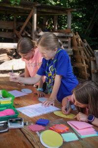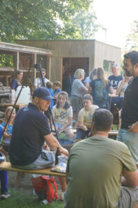 Etwas ruhiger, ging es an der Bastelstation zu: Dort hatten die Kinder die Möglichkeit, ihre schönsten Erinnerungen an das Pfadijahr auf Papier zu bringen – mit bunten Bildern oder liebevollen Worten. So entstand eine kleine Sammlung besonderer Momente, die zeigt, wie vielfältig und erlebnisreich das Jahr war.