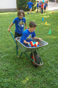 Neben dem gemeinsamen Grillen und vielen guten Gesprächen warteten auch zwei besondere Programmpunkte auf die Kinder: Beim Schubkarren-Parcour konnten sie ihr Geschick und Teamarbeit unter Beweis stellen.