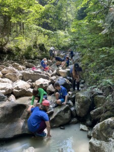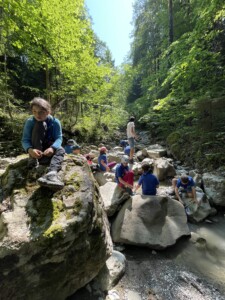 Mit zunehmender Tageswärme beschlossen die Pfadfinderleiter, eine kurze Abkühlung am nahegelegenen Bach einzulegen. Dort angekommen, ließen sich die WiWö das erfrischende Wasser auf die Haut spritzen und genossen die angenehme Kühle. Sie nutzten die Gelegenheit, um kleine Staudämme zu bauen und den Bach nach Herzenslust zu erkunden. Es war eine willkommene Pause, um sich zu entspannen und neue Energie zu tanken.