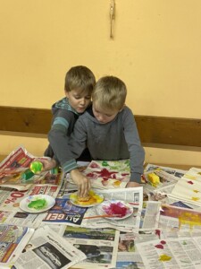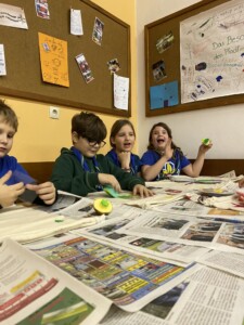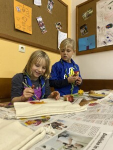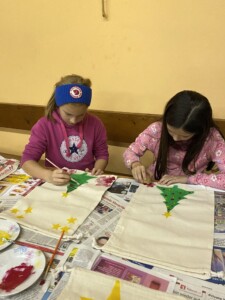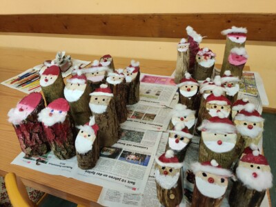 in der Wichtelwerkstatt mitgeholfen. Sie haben Stoffsäcke, welche als nachhaltiges Geschenkpapier eingesetzt werden können, weihnachtlich gestaltet. Ebenso haben sie für die weihnachtliche Deko gesorgt. So wurden aus Holzstämmen kleine Holznikoläuse geformt und aus Papier Engel gebastelt. Neben diesen gebastelten Kleinigkeiten wurden auch in der Weihnachtsbäckerei viele leckere Kekse gebacken und für die Erwachsenen weihnachtliche Liköre hergestellt. Dabei durfte die Qualitätskontrolle natürlich nicht fehlen.