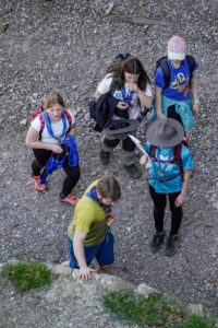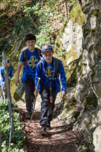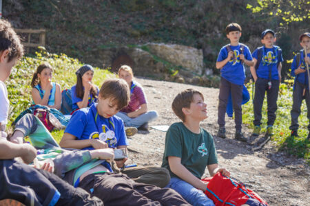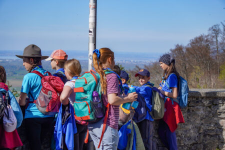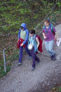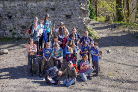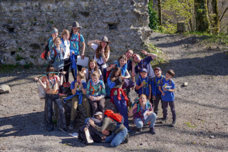 Unsere GuSp machten sich kürzlich auf zu einer spannenden Sagen-Hike rund um die Ruine Alt-Ems. Startpunkt war der Nibelungenbrunnen in Hohenems, wo die Patrullen mit Kompass, Karte und einem geheimnisvollen Hinweis-Umschlag ausgestattet wurden. Von dort ging es auf einem schmalen Pfad bergauf – immer auf der Suche nach versteckten Sagenfragmenten, die entlang der Strecke klug versteckt waren. Jede Patrulle erhielt dabei ein eigenes Fragment, das zu einer lokalen Sage gehörte, etwa ein Lindenblatt, ein goldener Kegel oder ein Pfotenabdruck.