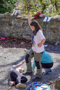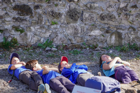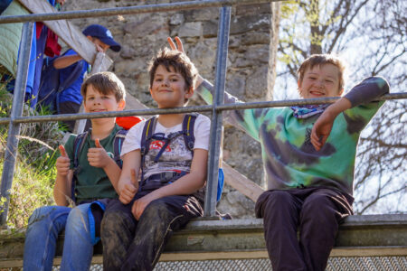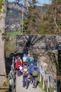 Oben angekommen, wurde die Ruine Alt-Ems zur Bühne für kreative Ideen: Die GuSp hatten Zeit, ihre jeweilige Sage vorzubereiten und in Szene zu setzen. Entstanden sind dabei fantasievolle Theaterszenen, knifflige Rätsel und sogar ein Mini-Bauwerk – jede Gruppe brachte ihre Geschichte auf ganz eigene Weise zum Leben. So wurde aus dem Hike nicht nur ein sportliches, sondern auch ein kulturelles und kreatives Erlebnis mit viel Teamgeist und Entdeckerfreude.