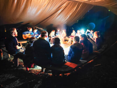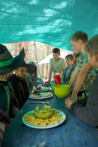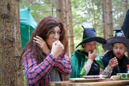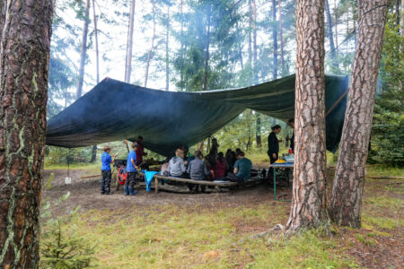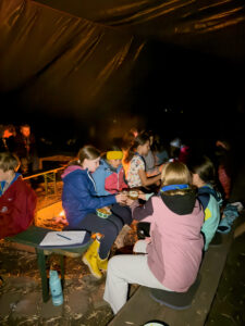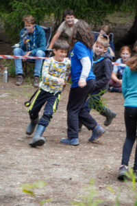 Der dritte Tag führte noch tiefer in die Welt der Magie. Die Häuser gestalteten stolz ihre Wappen, und aus einfachen Holzstücken entstanden mit Geduld und Geschick die ersten Zauberstäbe – jeder ein Unikat mit ganz eigener Kraft. Am Nachmittag durchstreiften die GuSp den geheimnisvollen Wald bei einem packenden Spiel Capture the Flag. Dort war Mut, Teamgeist und Ausdauer gefragt. Der Tag endete in warmem Licht am Lagerfeuer, wo Geschichten erzählt und Werwölfe gejagt wurden.