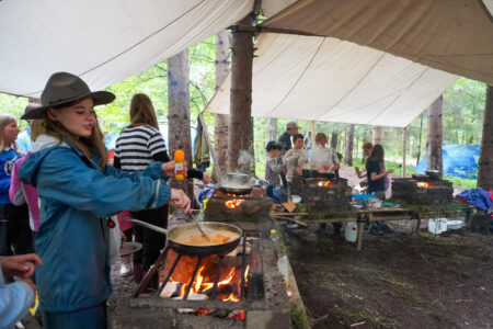 Am nächsten Tag erwachten die Wälder rund um das Pfadiheim in zauberhaftem Glanz. Mit viel Fleiß entstanden Kochstellen und Herde, die fast wie durch Zauberei Gestalt annahmen. Als am Abend das erste selbstgekochte Mahl über den offenen Flammen dampfte, schien es, als ob Hogwarts selbst den GuSp Beifall spendete.