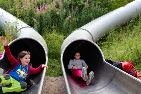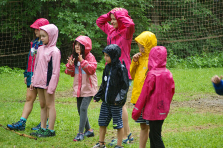 Leider überraschte uns an diesem Tag auch heftiger Regen, aber das konnte unsere Abenteuerlust nicht bremsen. Wir schlüpften in Regenjacken und Gummistiefel und genossen Wasserspiele inmitten des erfrischenden Regens.